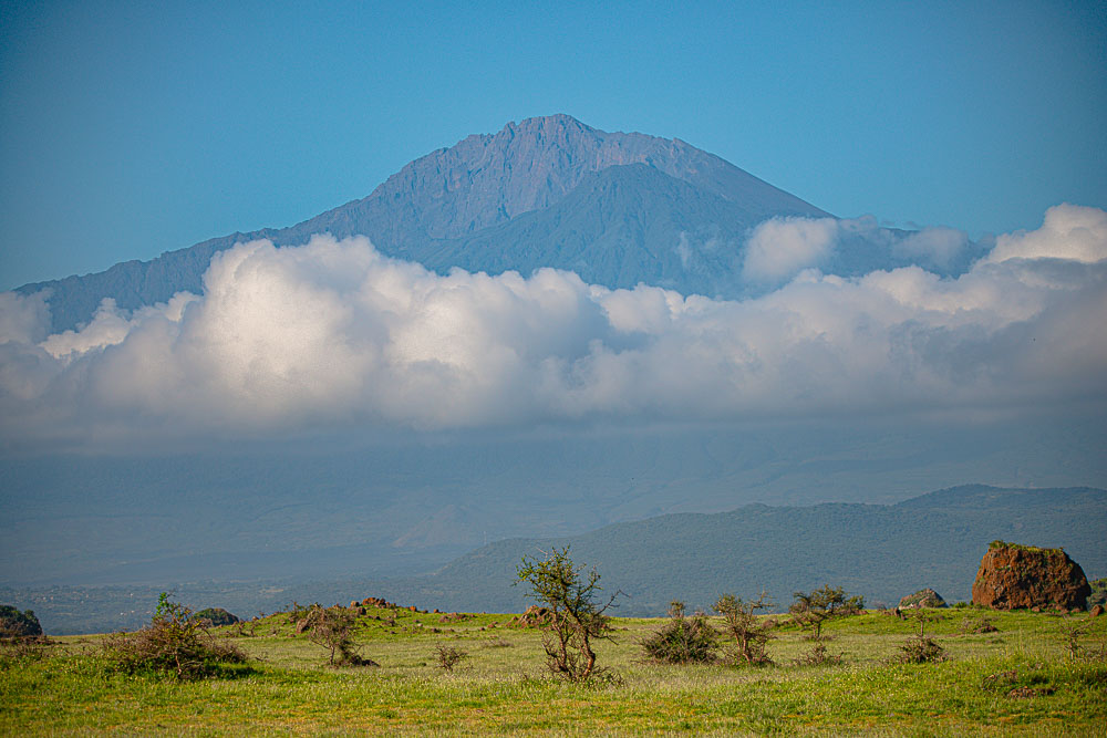 Wir brechen aber so früh wie möglich auf, um möglichst viel von dem Tag zu haben. Unterwegs zum Sinya Reservat der Blick zum Mount Meru.