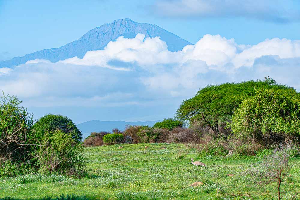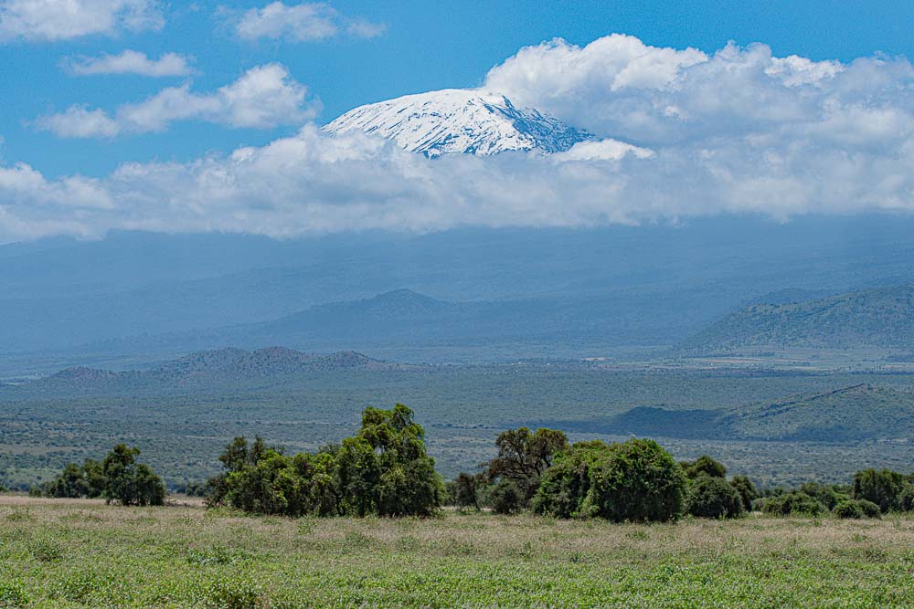 Beim Gate zum Reservat bekommen wir einen Blick zum Kilimandscharo.