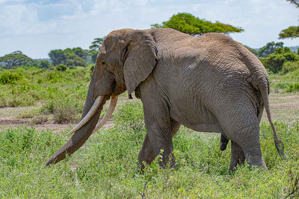 Diesen einsamen Elefantenbullen spüren wir ganz an der Grenze zu Kenia auf.
