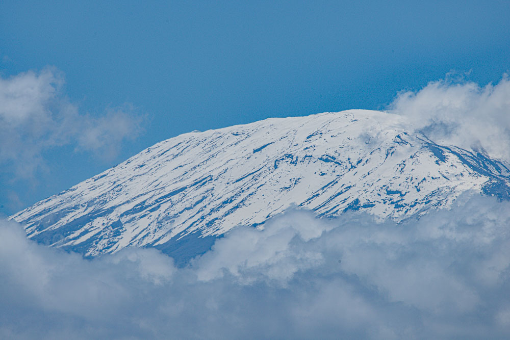 Kilimandscharo, jetzt teilweise in Wolken.