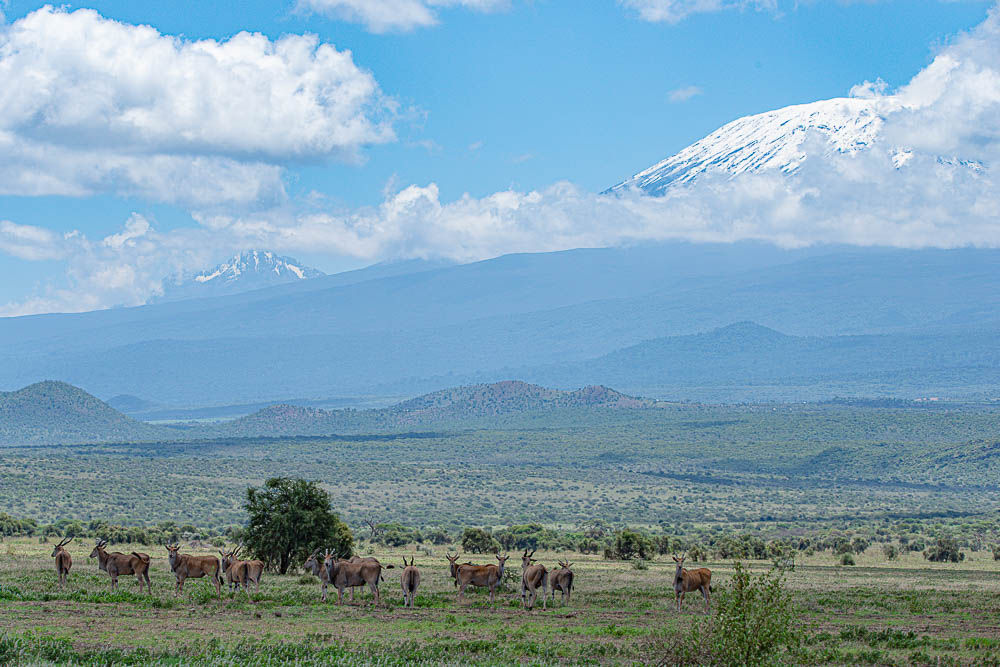 Elenantilopen und Kilimandscharo.