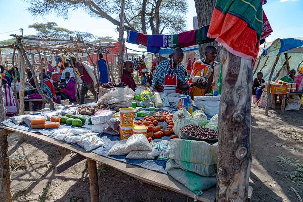 Wochenmarkt im Maasaidorf im Sinya Reservat.