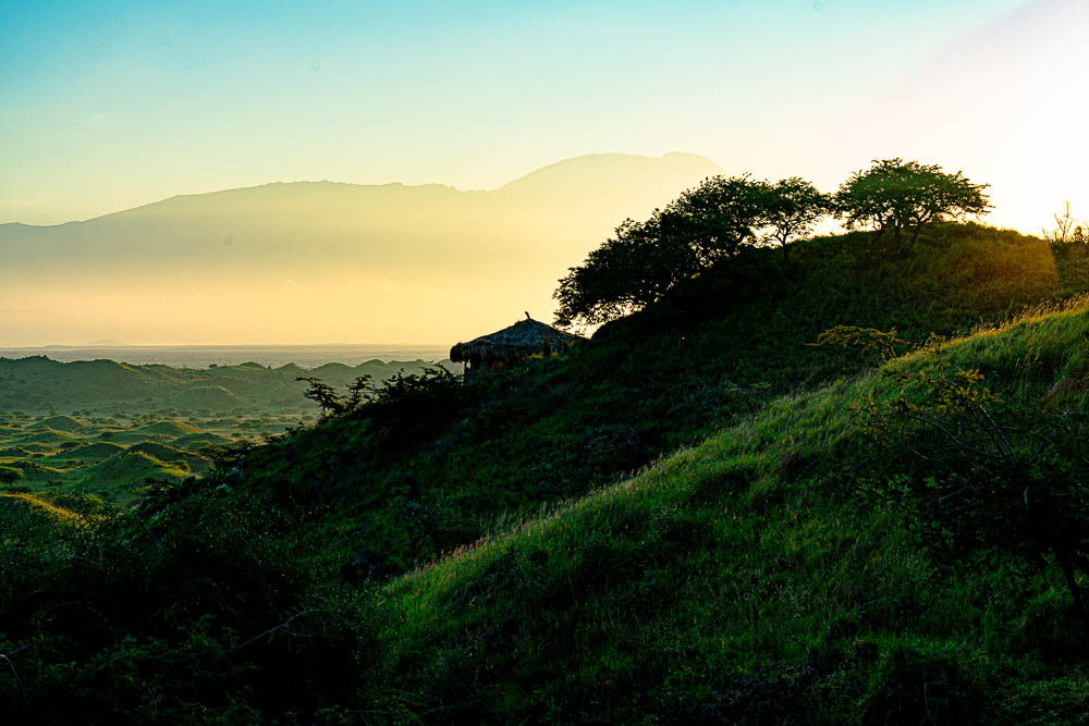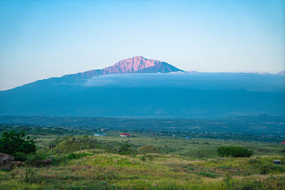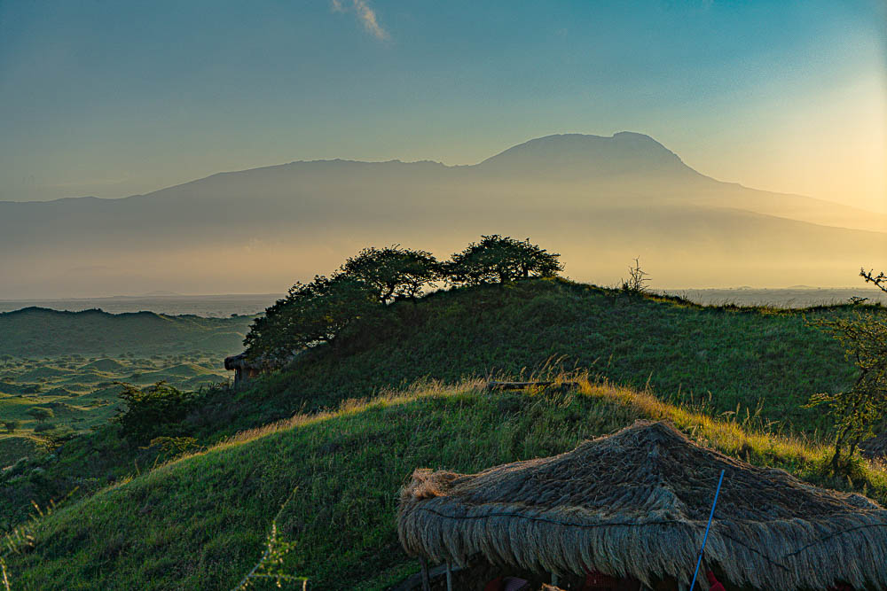 Währenddessen geht hinter dem Kilimandscharo die Sonne auf.