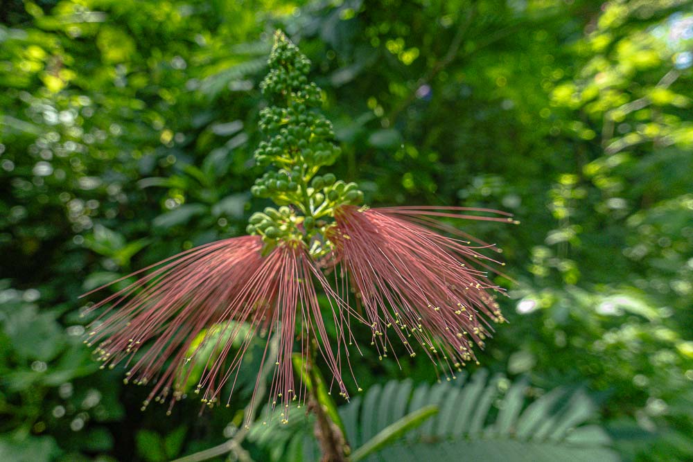 Am Flussufer wild wachsend ein Puderquastenstrauch (Calliandra houstoniana)