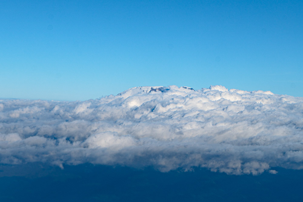 Beim Heimflug erhaschen wir noch einen kurzen Blick auf den Kilimandscharo.