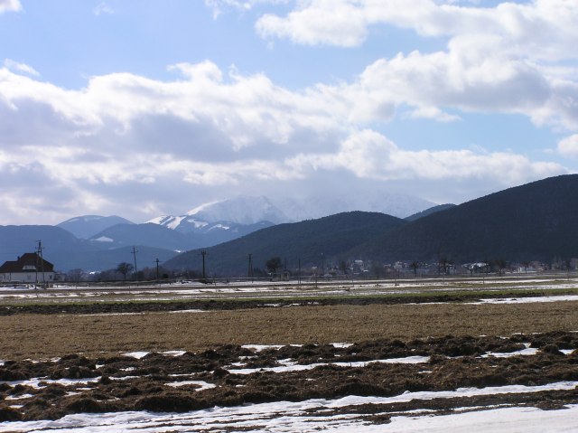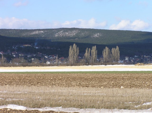 Schneeberg, links das letzte Haus von Weikersdorf, rechts hinten Winzendorf
