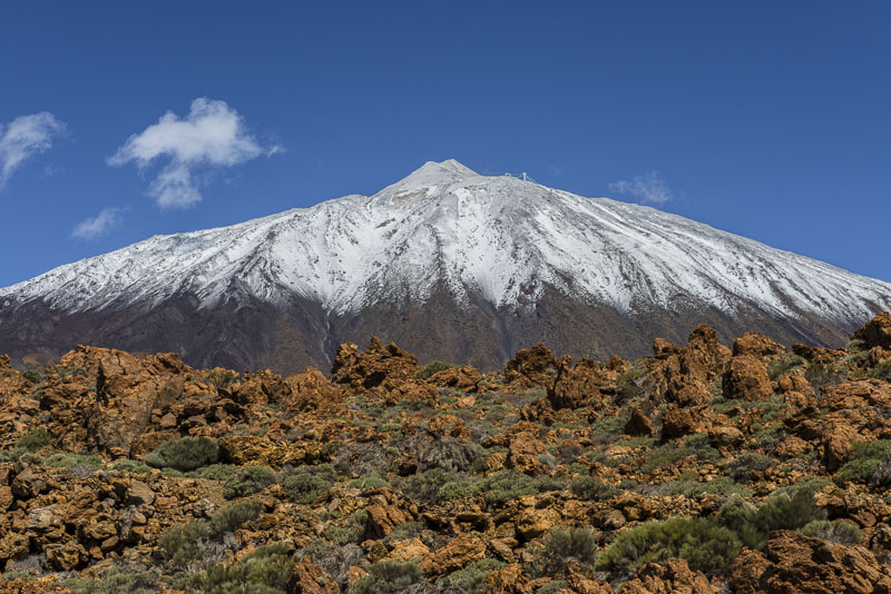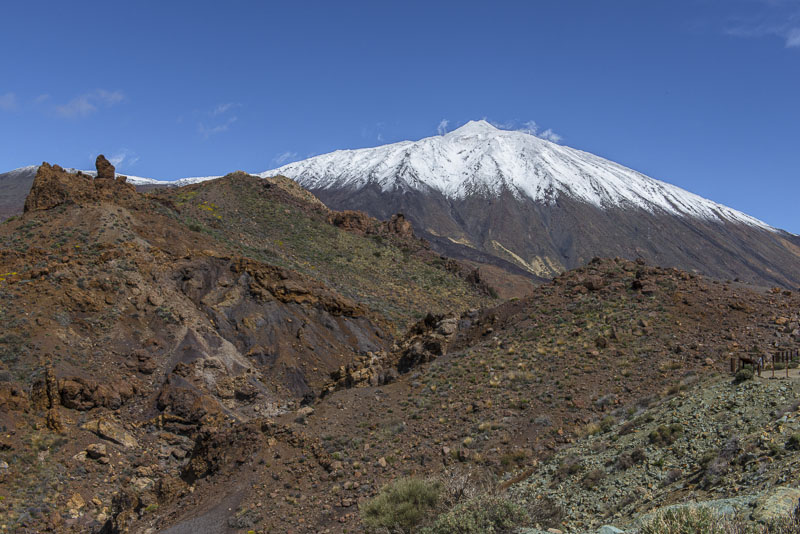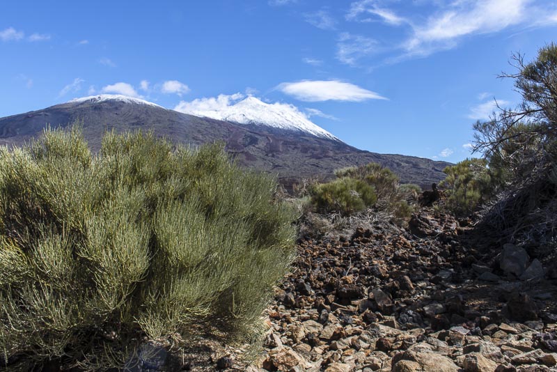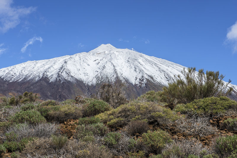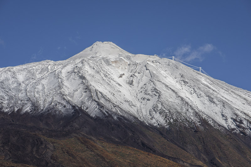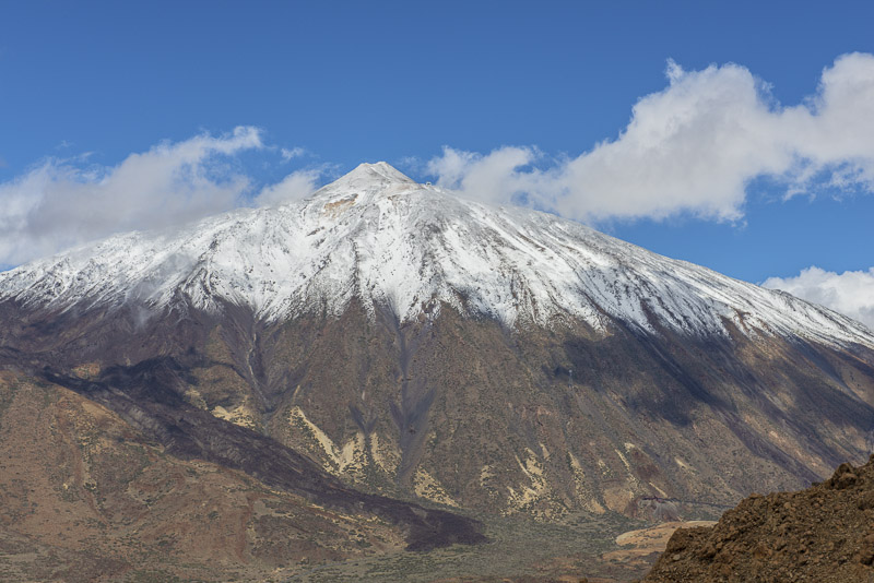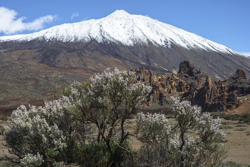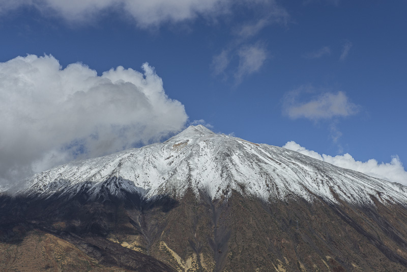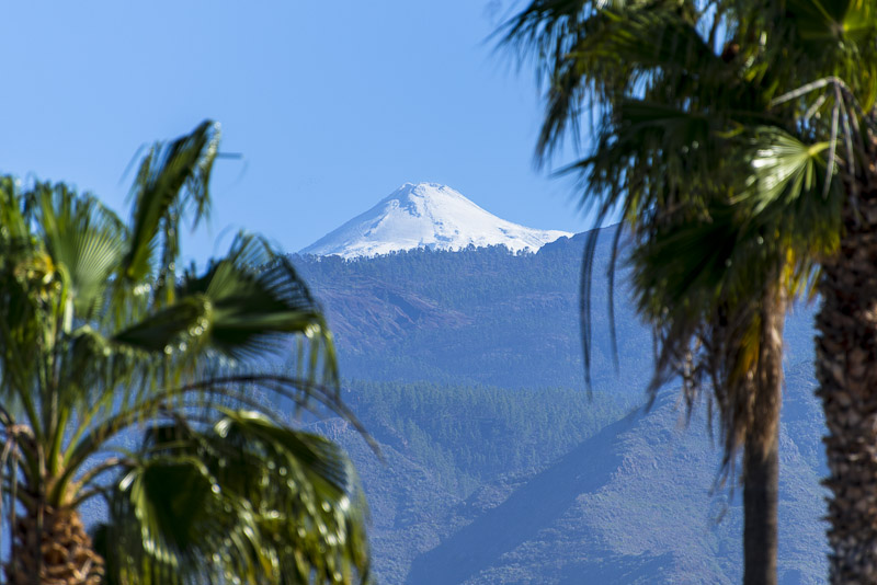 We enjoy the morning from the terrace of our room. Suddenly, I face that view up to the steep volcanic cone of Pico del Teide (3.717 m), covered with snow after yesterday´s rain.
