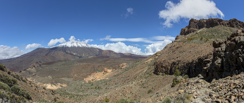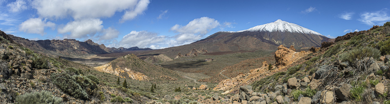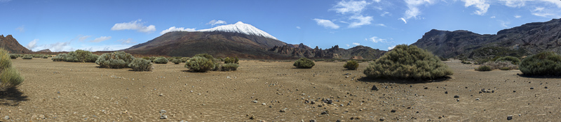 Panoramic picture of the western Caldera of the Las Canadas, which is delimited to the east by the rocks. Click here or into the picture for a larger display.