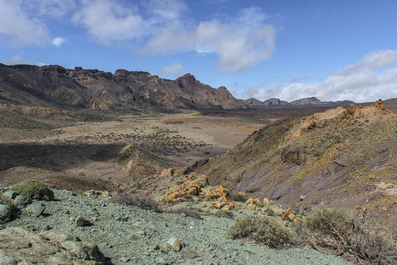 Panoramic view over the western Caldera of the Las Canadas, as seen from the ridge of Guajara. Click here or into the picture for a larger display..