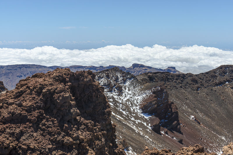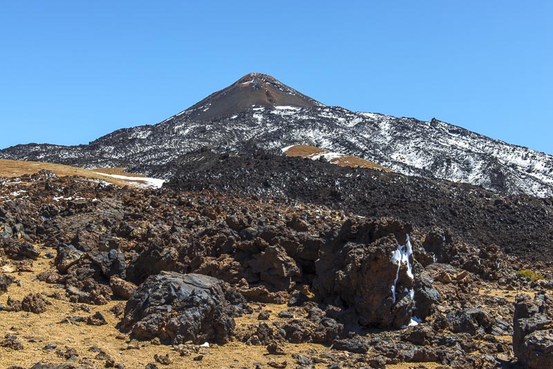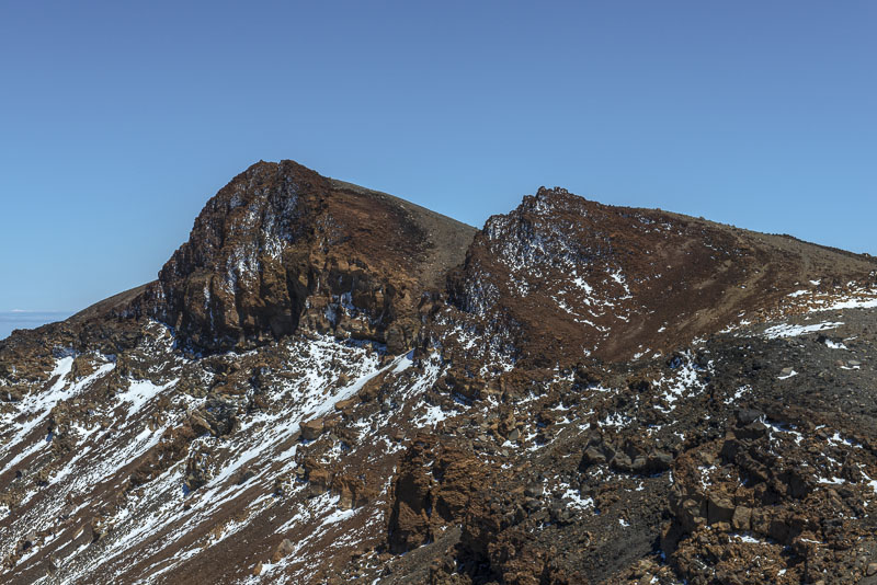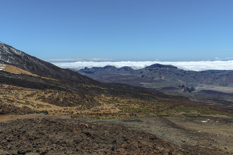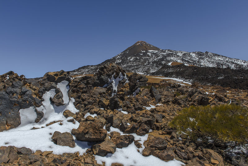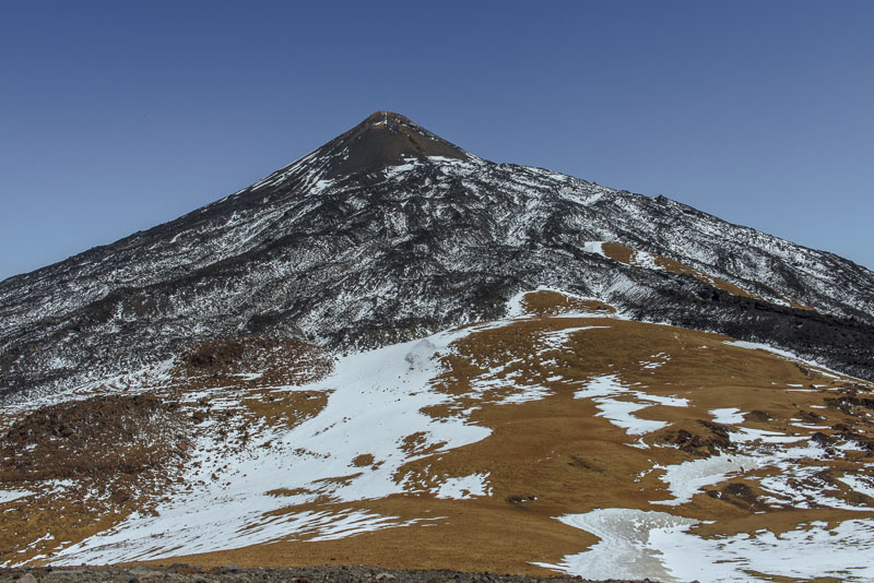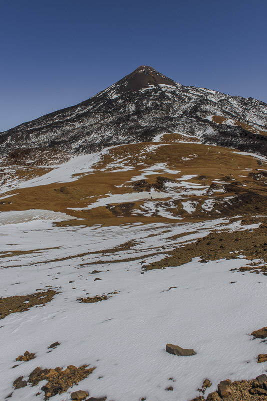 Large spots of snow down the slope to the saddle between Pico Viejo and Pico del Teide.