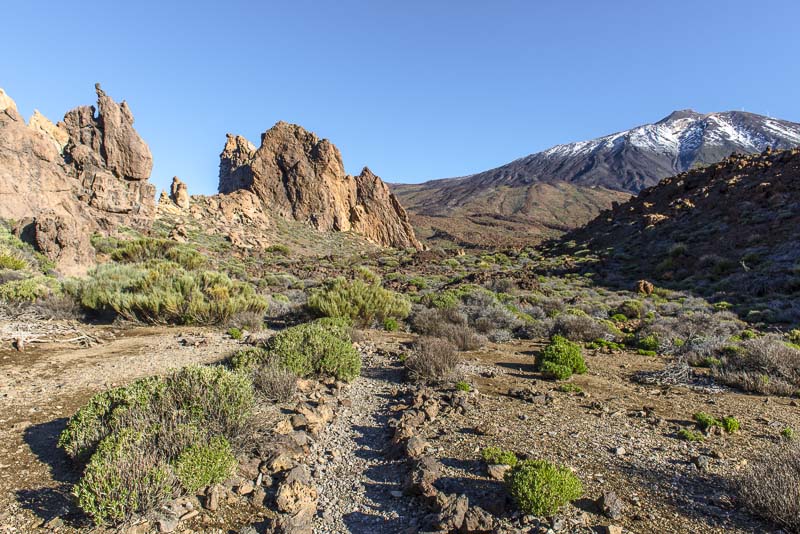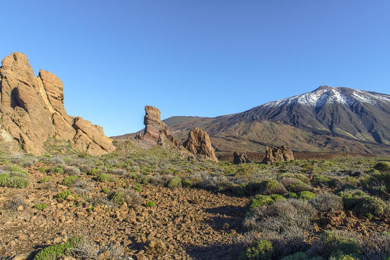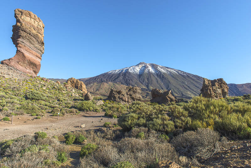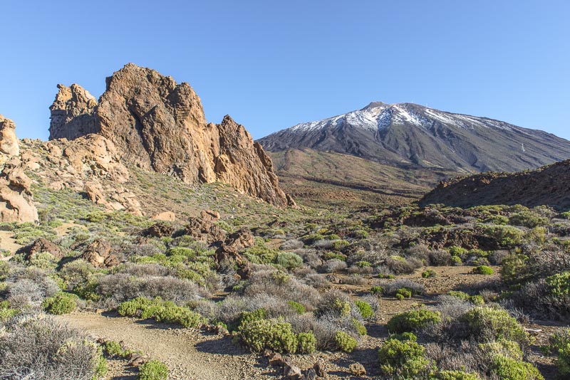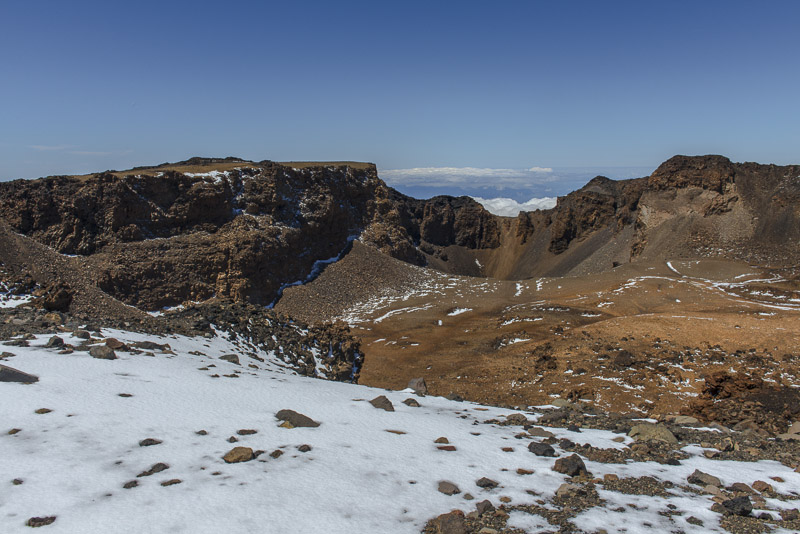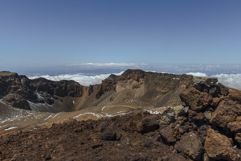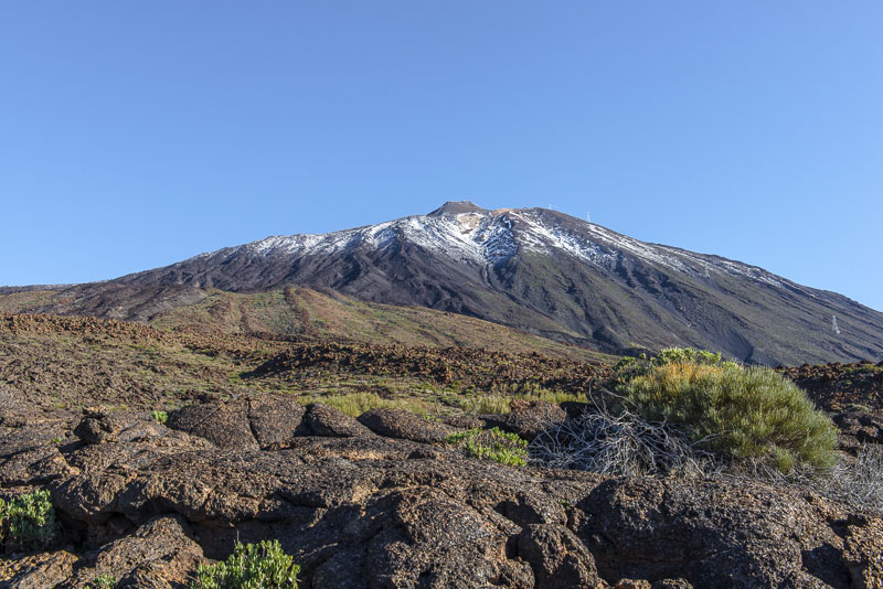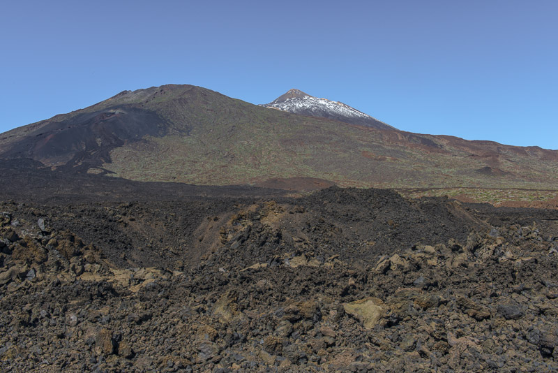 Large spots of snow down the slope to the saddle between Pico Viejo and Pico del Teide.