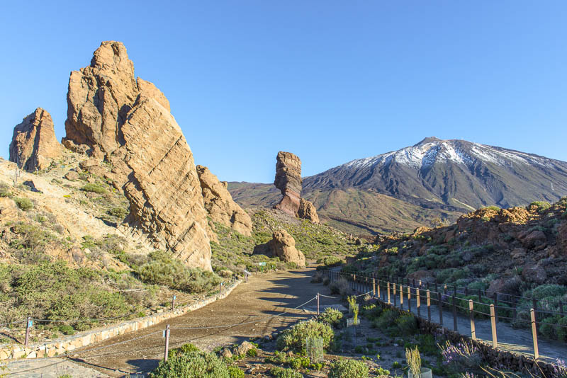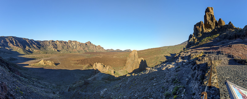 Panoramic picture of some of the Roques de Garcia with the Pico del Teide. Click here or into the picture for a larger version.