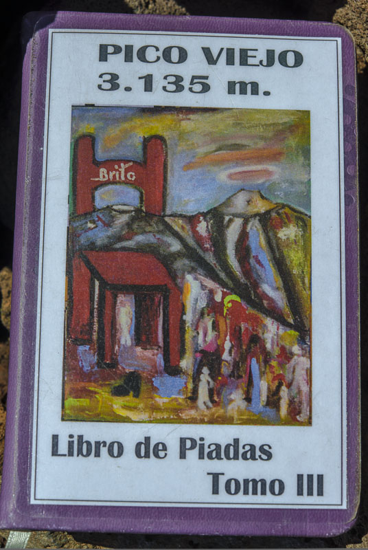 The summit cairn of Pico Viejo with the tin can containing the summit book.