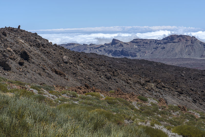 At a parking place you get a wonderful view to Pico del Teide. The western crater rim of Pico Viejo, which I have seen before from the summit as a foreground to the mist, from this point appears as the summit of Pico Viejo.