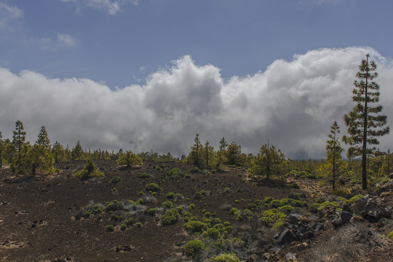 At the western end of the Las Canadas ist you find yourself at "the end of the world" - the terrain here descends - first a smooth descent more and more increasing culminating in the huge cliffs of the Los Gigantes. The thermic clouds are approaching here more and more.