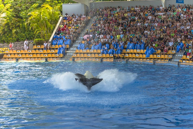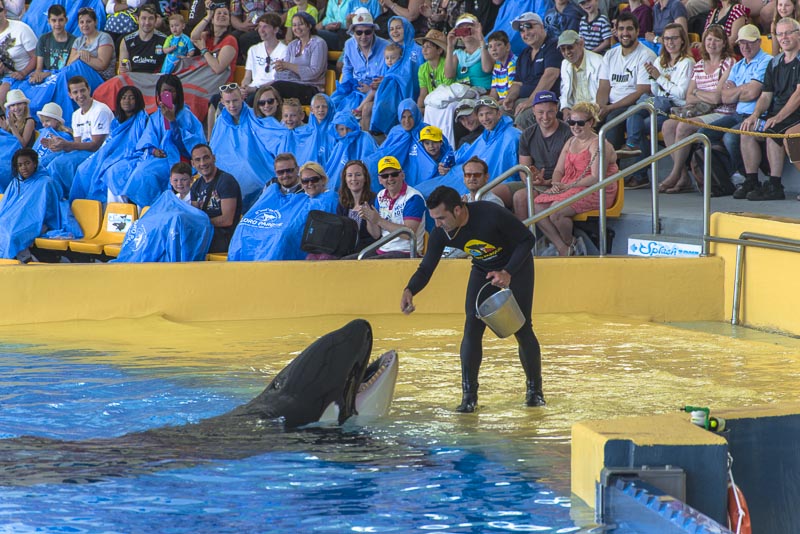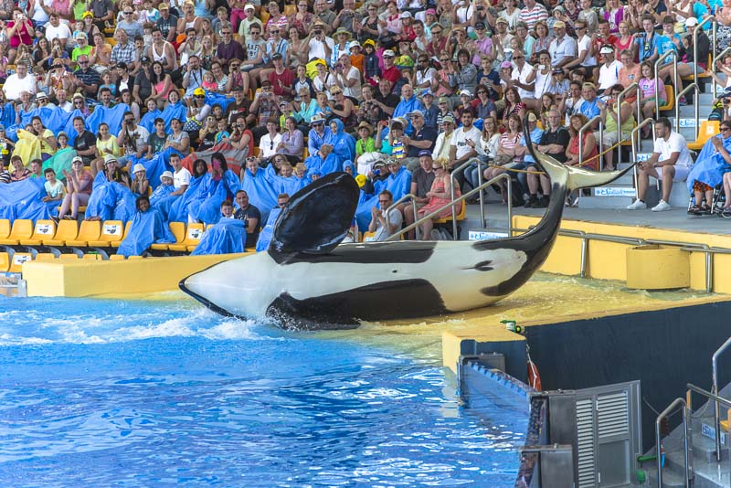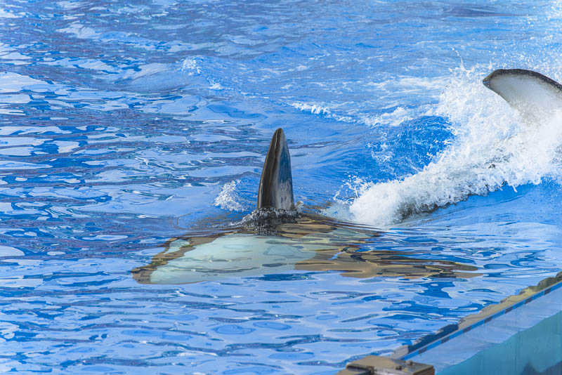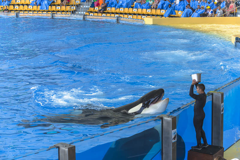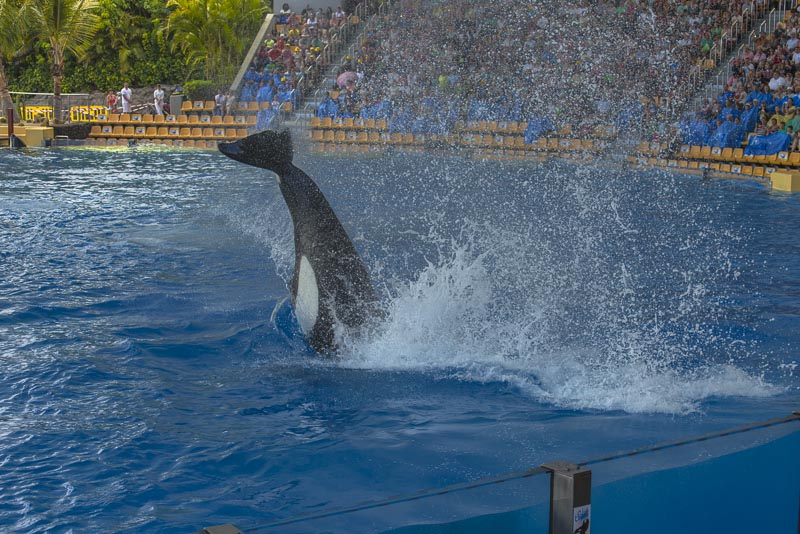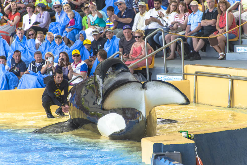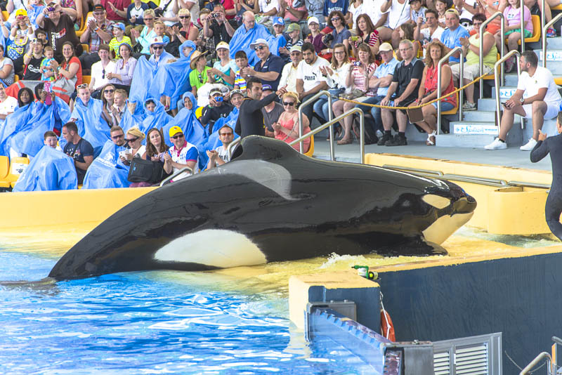 ... now for the Orca show. I know itīs controversial to keep Orcas in a small pool ... but they are giving a great show.