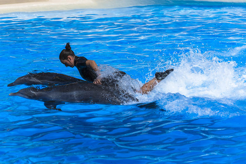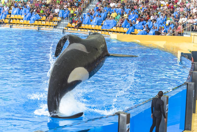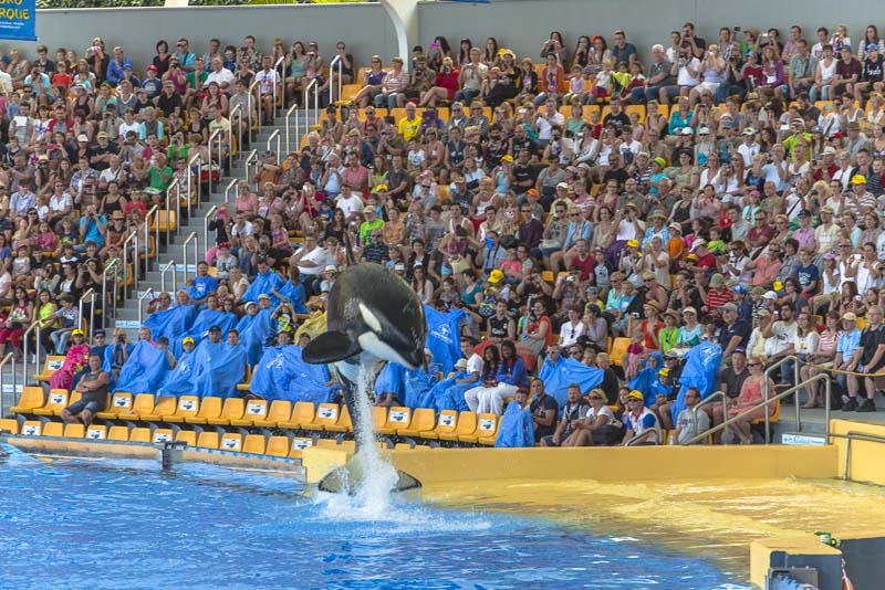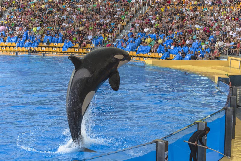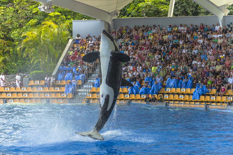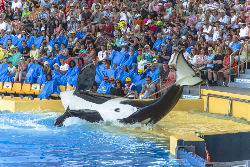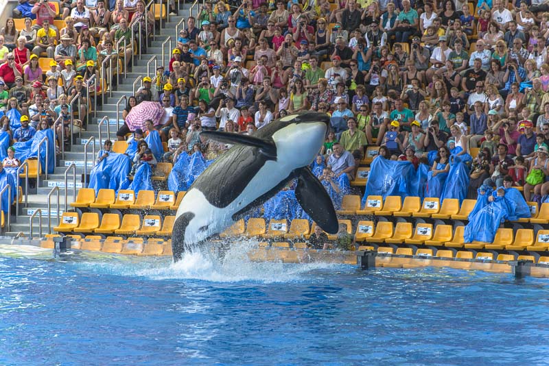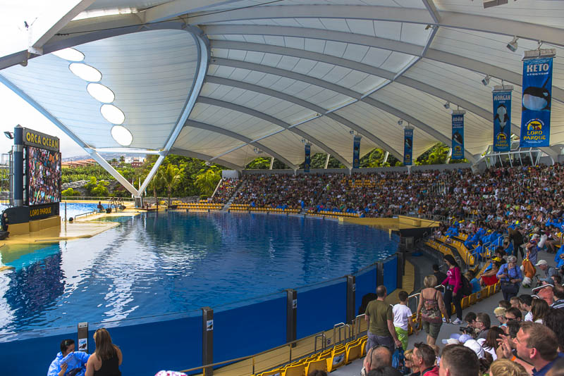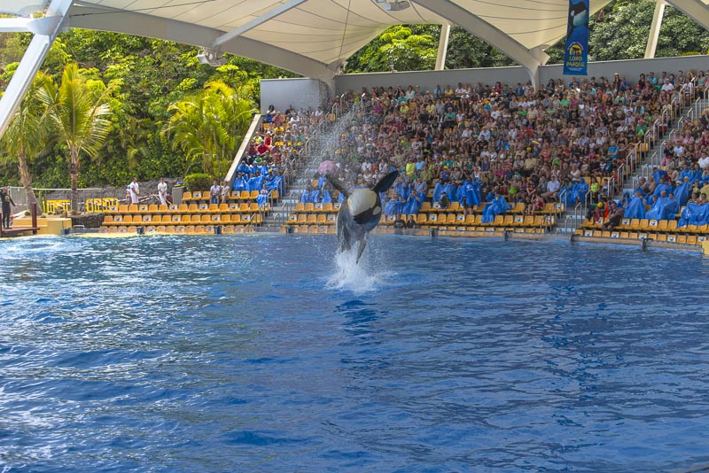 ... now for the Orca show. I know itīs controversial to keep Orcas in a small pool ... but they are giving a great show.