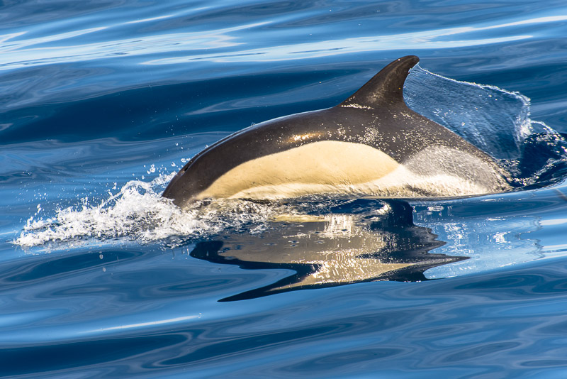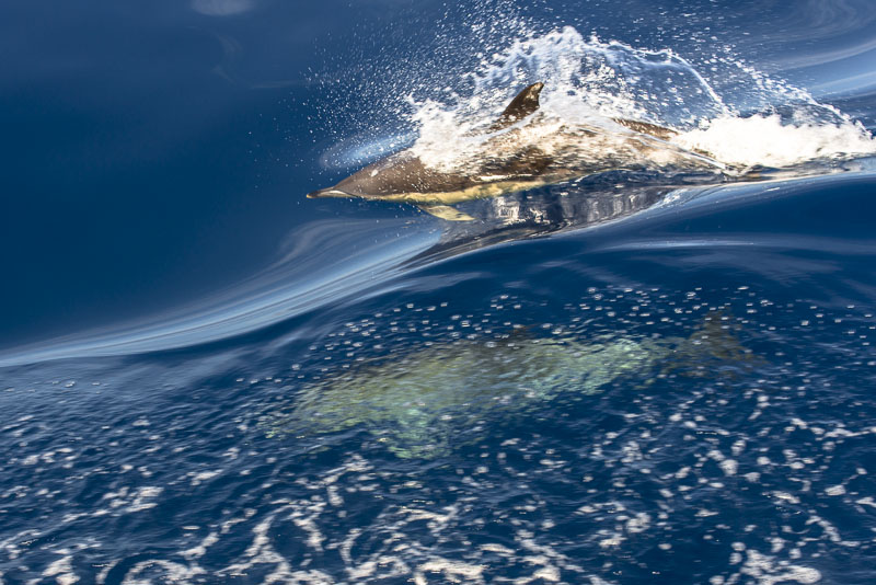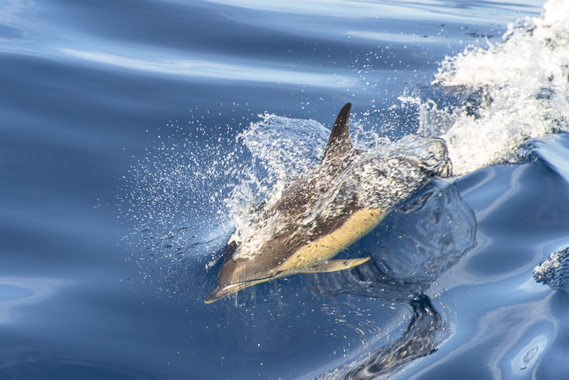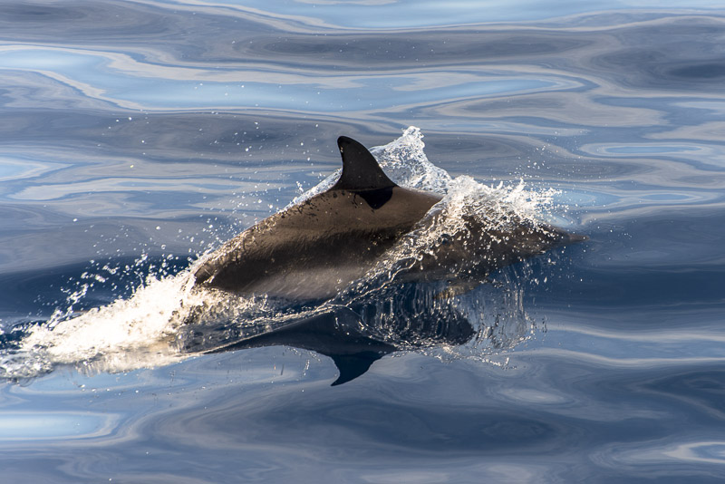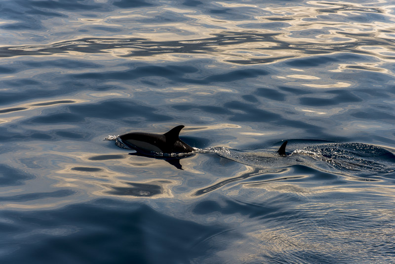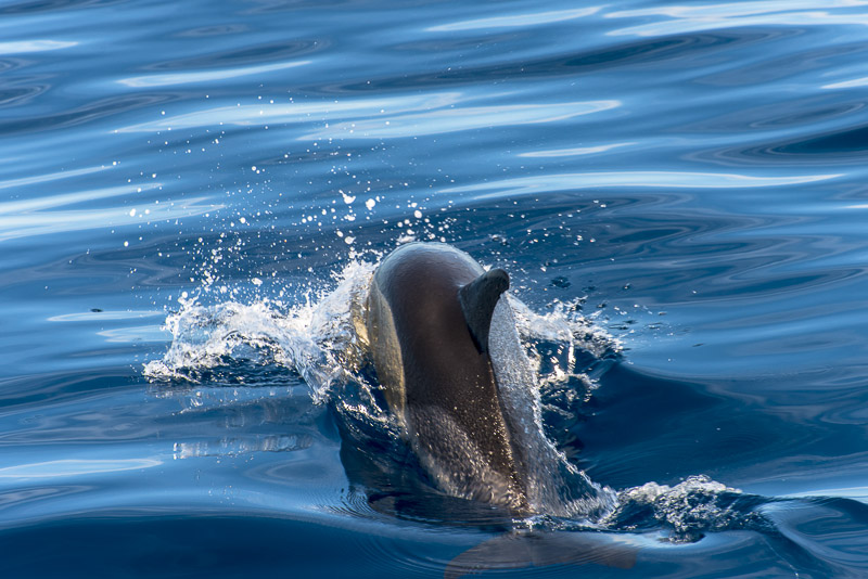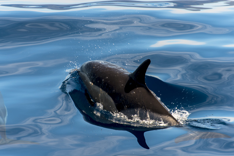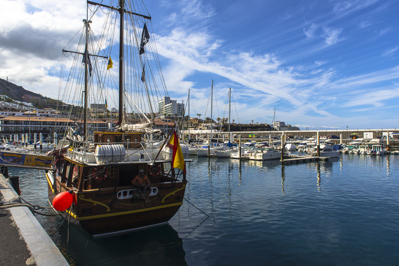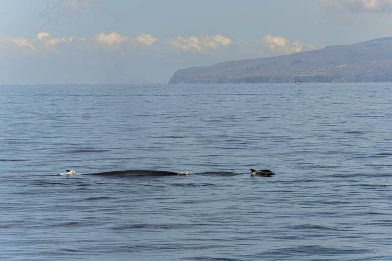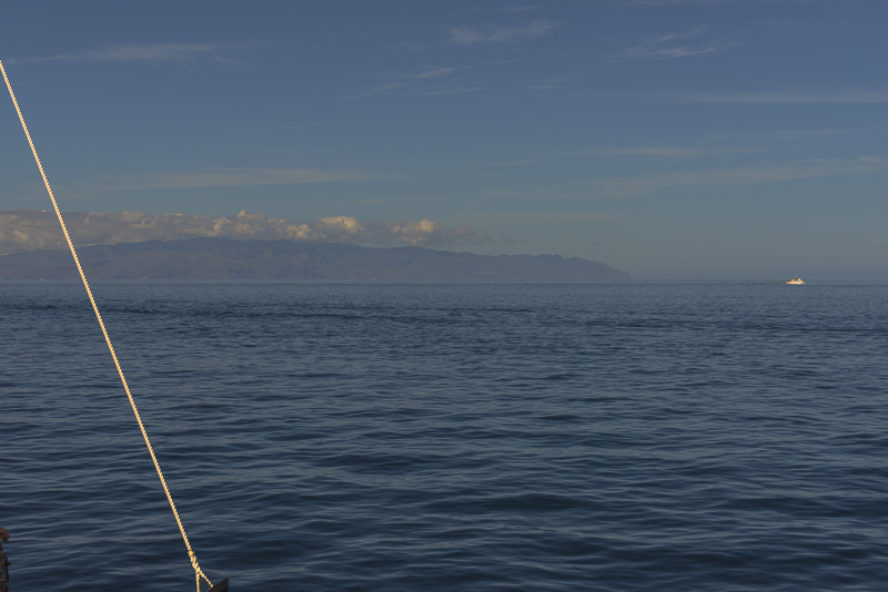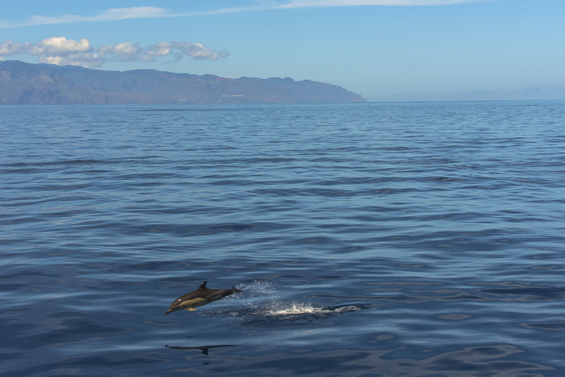 Susanne has booked a "Whale watching" trip. We are fetched from the hotel by a shuttle bus and driven to the coast village of Puerto de Santiago. There we enter a boat which brings us out on the open sea to detect dolphins and whales.