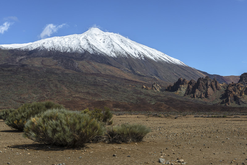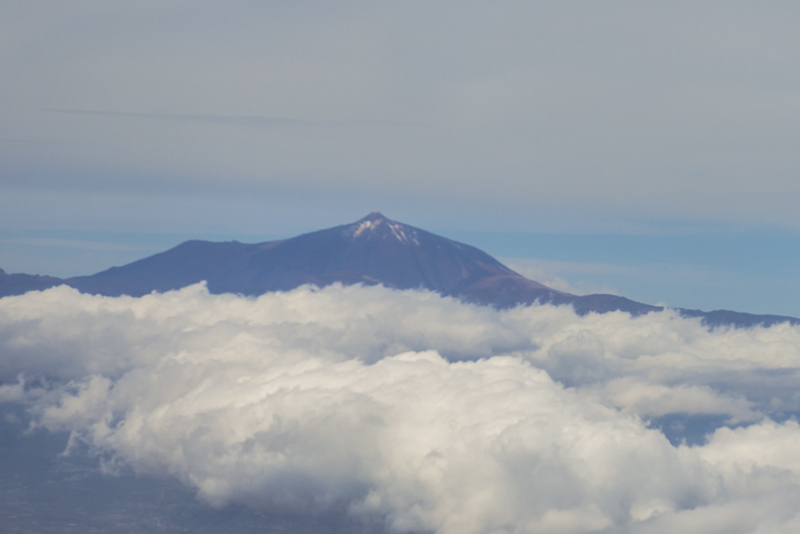 Der Pico del Teide in typischer Pose: rechts (nordöstlich) mit Passatwolken.
