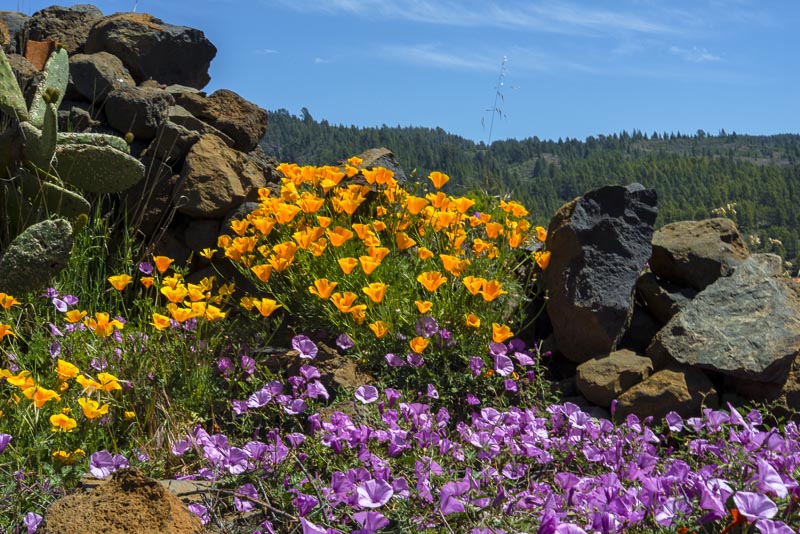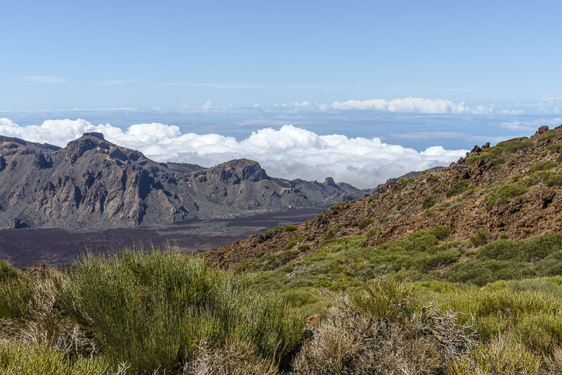 Dieses Jahr haben wir uns Teneriffa vorgenommen. In einem schönen Hotel in San Eugenio Bajo (Costa Adeje) an der Südküste haben wir unser Quartier bezogen. Die meisten kanarischen Inseln (jedenfalls die mit höheren Bergen) haben zwei Klimazonen: eine nördliche an der Nordküste, wo der Passatwind die Wolken staut und es daher viel kühler ist und auch wesentlich mehr regnet. An den nördlichen Berghängen gibt es sogar so etwas wie einen "Nebelwald", wo fast immer Nebel hängt. Die Südseite dagegen ist durch die Berge vor den Passatwolken geschützt und sonnig, zumindest an der Küste. Im Gebirge hängen auch hier oft Thermikwolken.