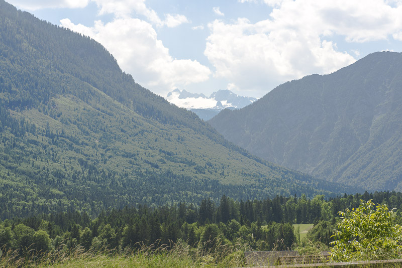 This is the view from our hotel Bei unserem Hotel Wasnerin above Bad Aussee. Tis view to the south goes to the Dachstein (2.995 m) with its glacier, ...