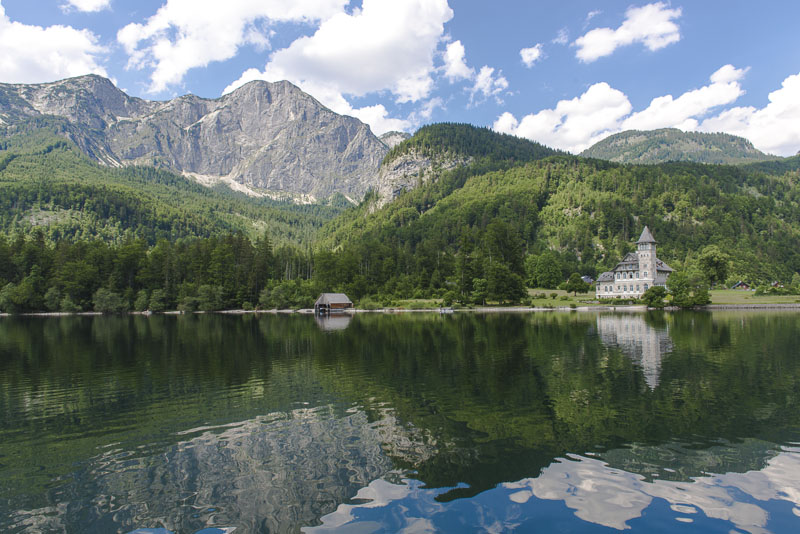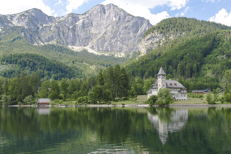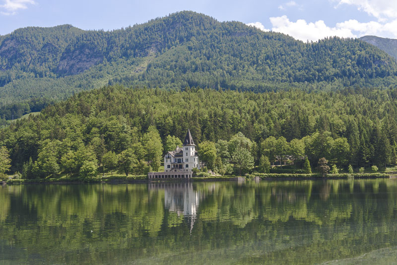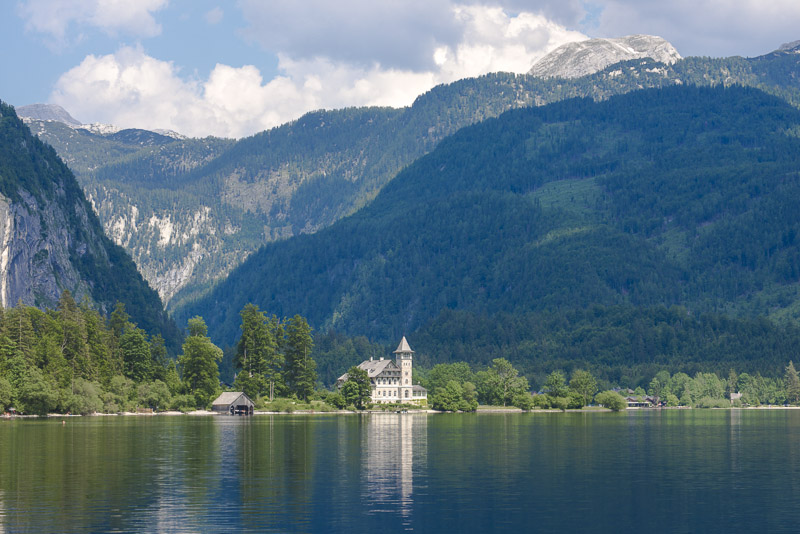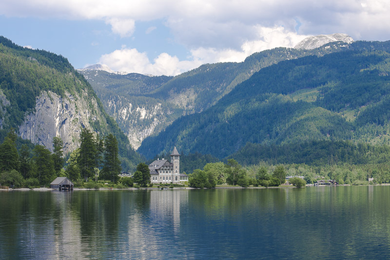 Grundlsee Castle. We are approaching the end of our journey at the head of the lake.