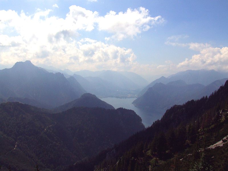 ... nach Süden - das obere Ende des Traunsees mit der Ortschaft Ebensee.
