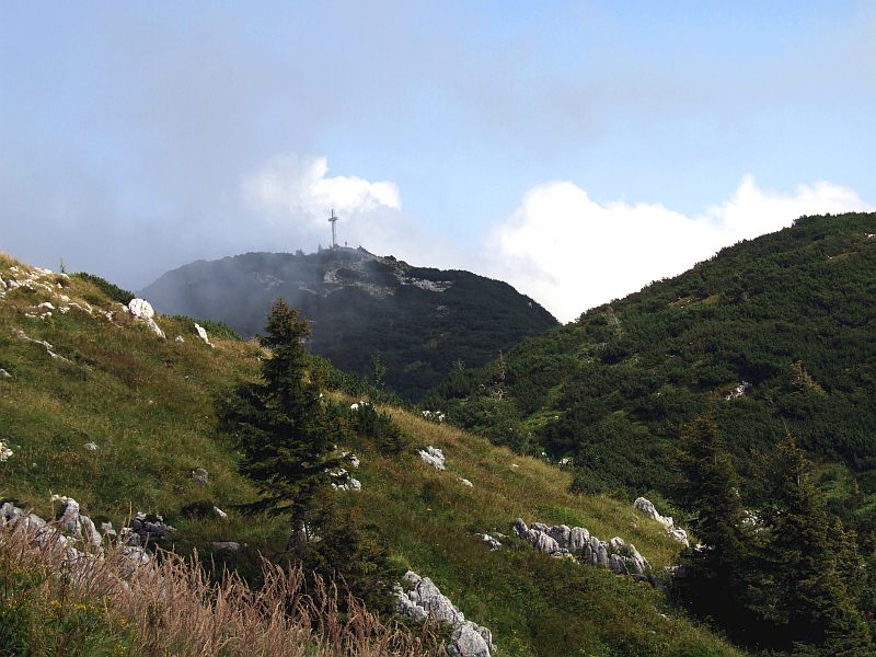 Das Gipfelkreuz des Traunsteins auf 1.691 m Höhe.