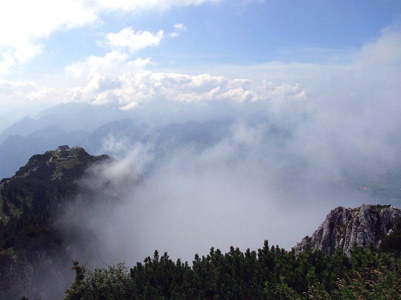 Der Traunstein ist allerdings noch in Wolken gehüllt.