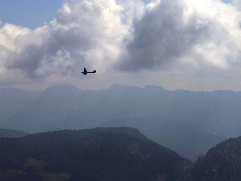 Auf gleicher Höhe mit den Sportflugzeugen.