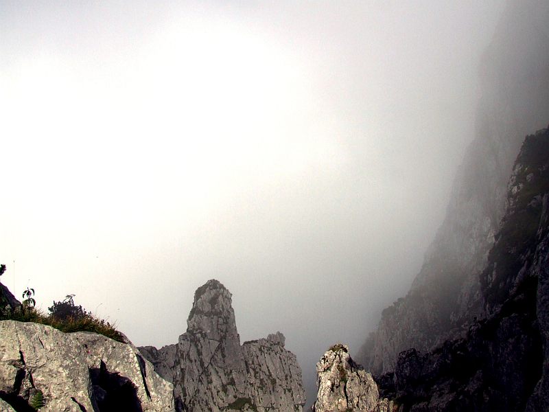 Wieder am Abstieg: jetzt lichtet sich der Nebel über der Nordwestwand ...