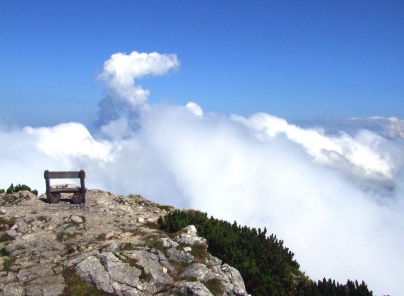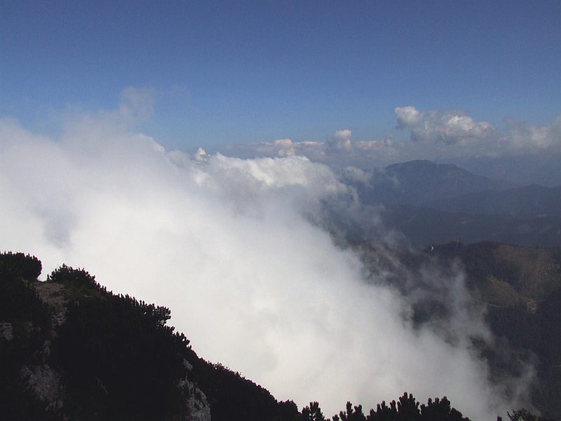 Wir sitzen jetzt fast eine Stunde auf dem Gipfel und beobachten fasziniert die rasch umherziehenden Nebelschwaden.