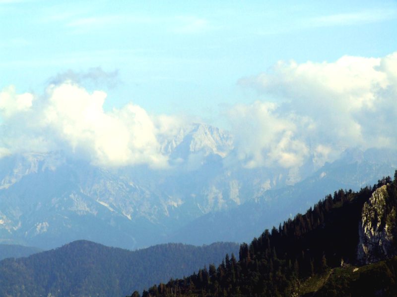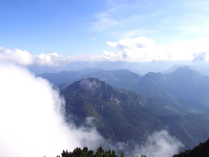 Endlich wird der Blick aufs Tote Gebirge frei, ich nehme an dies ist der Große Priel (2.515 m)