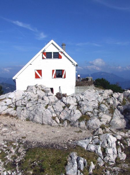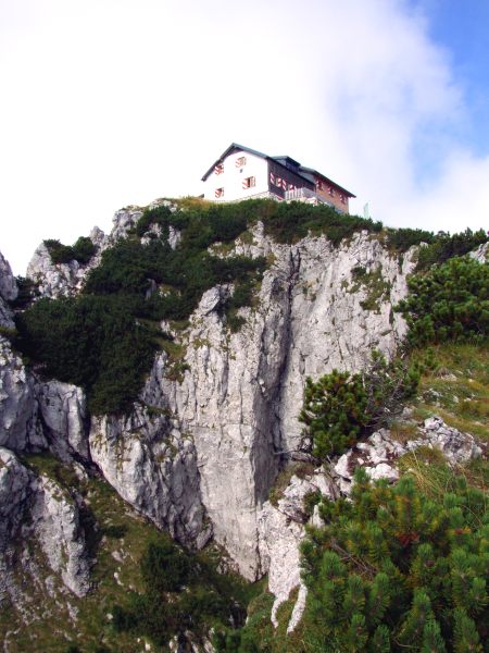 Am Plateau angekommen: Das Traunsteinhaus am Ausstieg des Naturfreunde - Klettersteigs