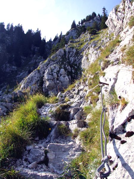 Der Weg ist gut mit Stufen versehen, das Seil brauchen eigentlich nur Ängstliche oder Bequeme (so wie ich - es turnt sich damit schon leichter bergab, muss ich sagen!)
