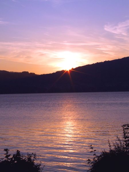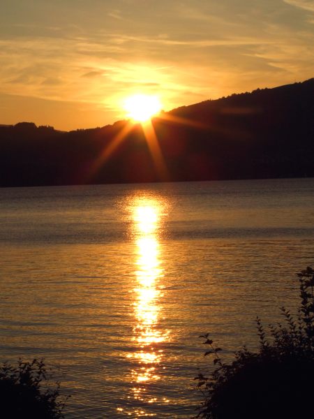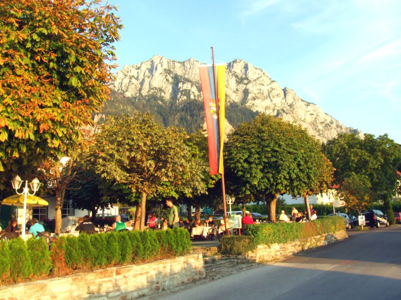 Wir haben die Räder im Auto verstaut, die Bergschuhe ausgezogen und gönnen uns jetzt noch ein gutes Abendessen im Gasthof Ramsau, direkt am Seeufer, wo wir beim Essen zuschauen, wie die Sonne ...