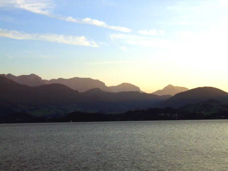 Abendstimmung über dem Traunsee mit dem Höllengebirge im Hintergrund