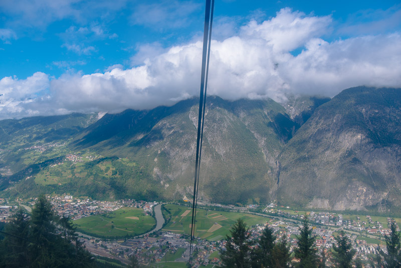 And up we go, 1.438 m altitude difference. This is the view to Landeck ...