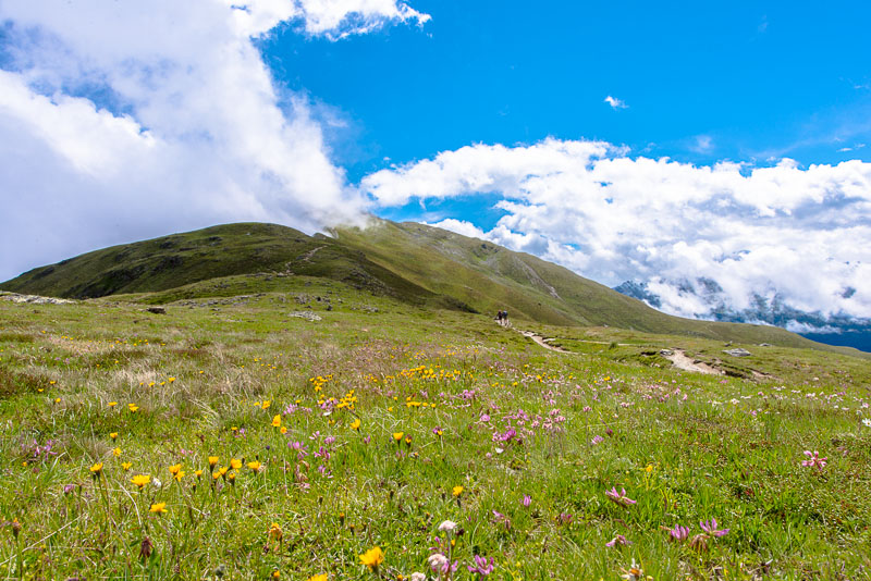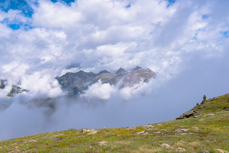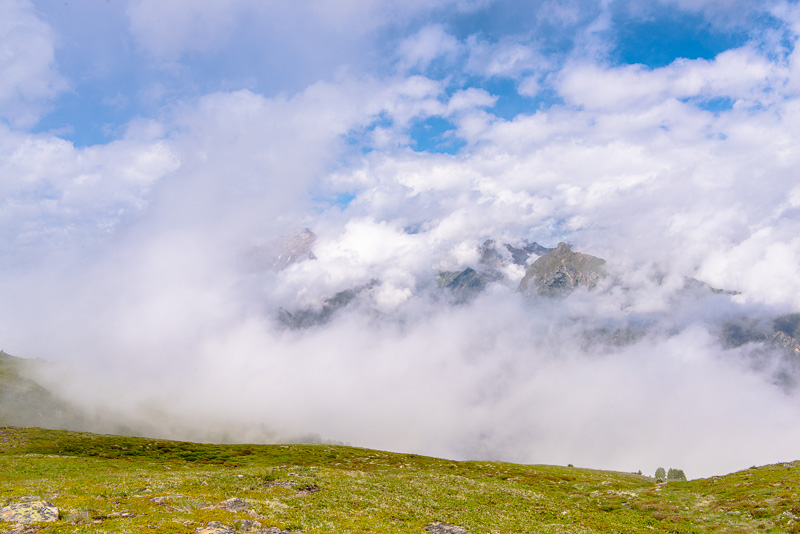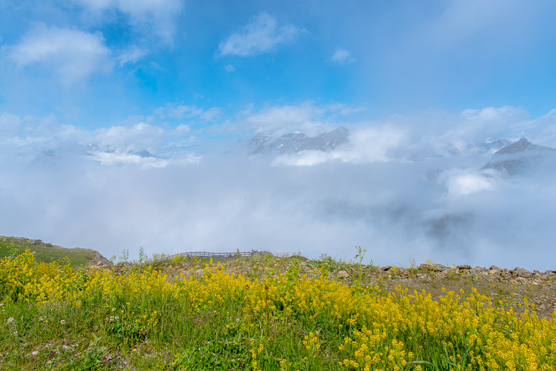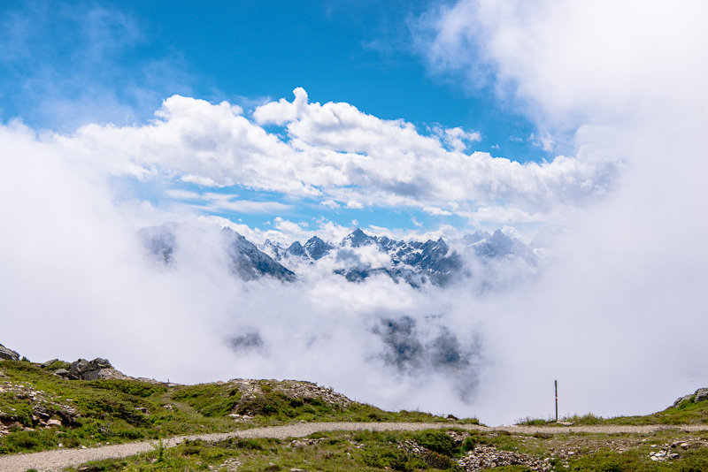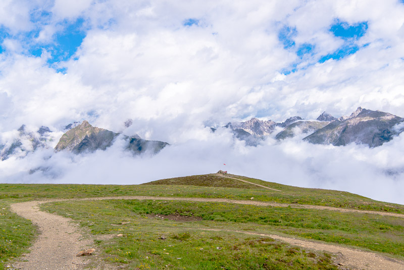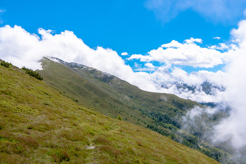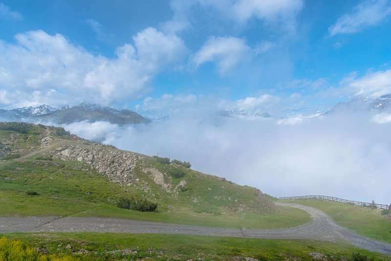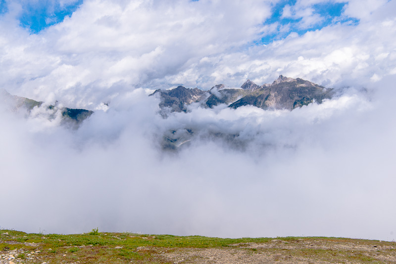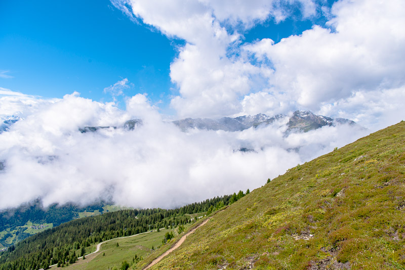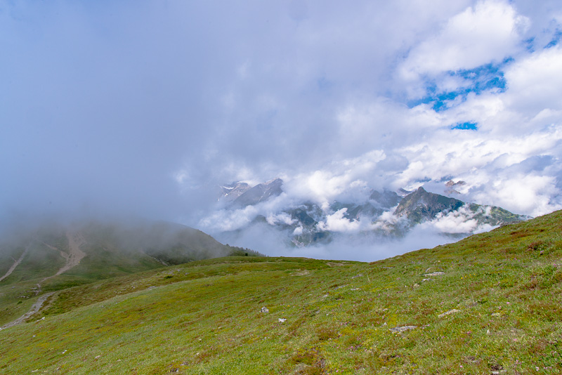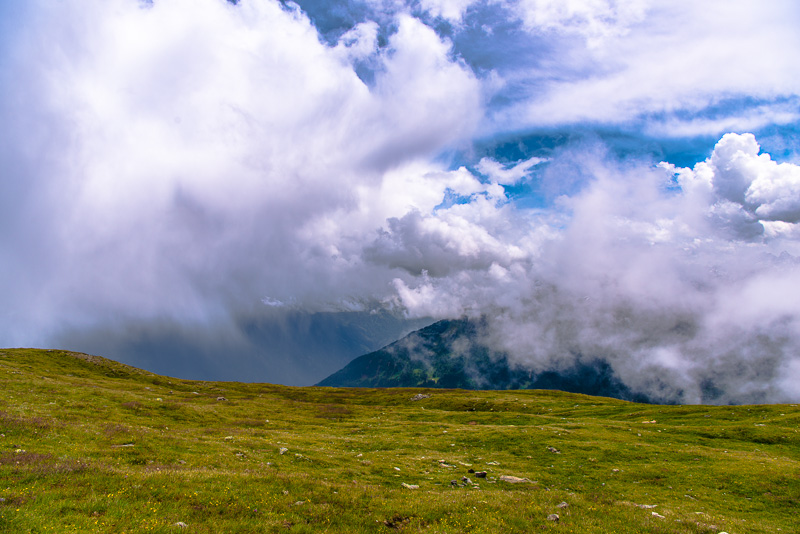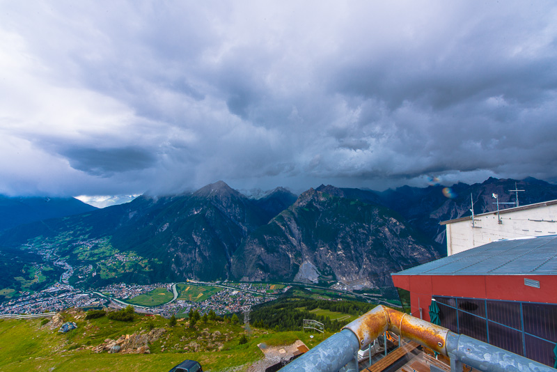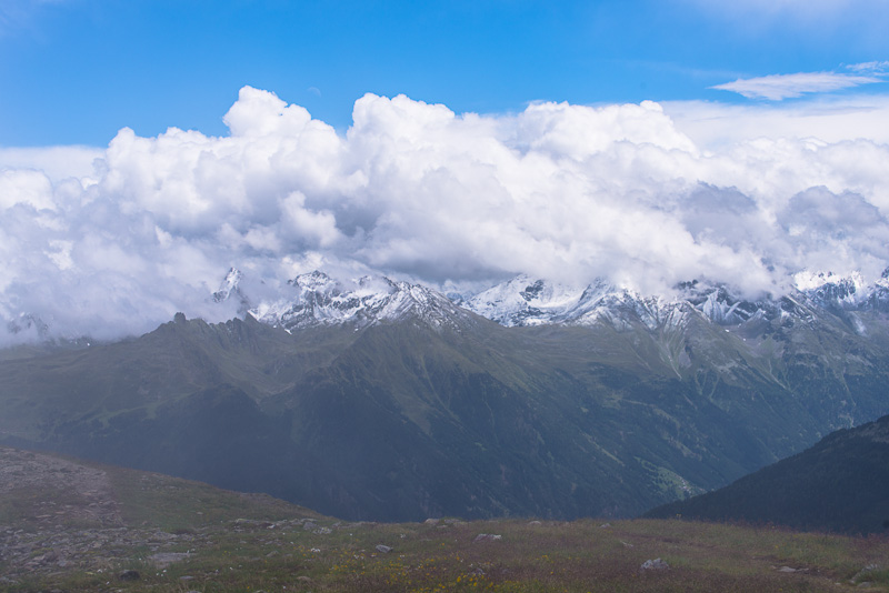 Upper Inn valley. Behind the Samnaun group (right) a shower is building up.