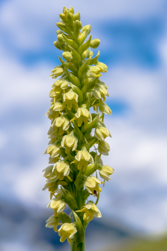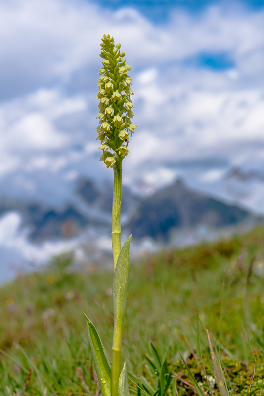 Lots of Small White Orchids (Pseudorchis albida) in the mountain grassland.