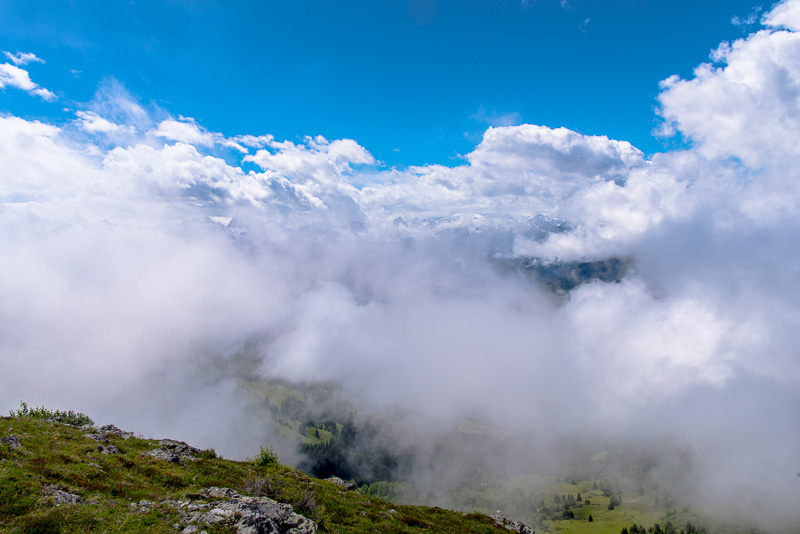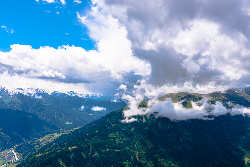 View to the North to the Lechtal Alps. Mist seems to cover the Inn valley, but I think it only wraps the upper slopes.