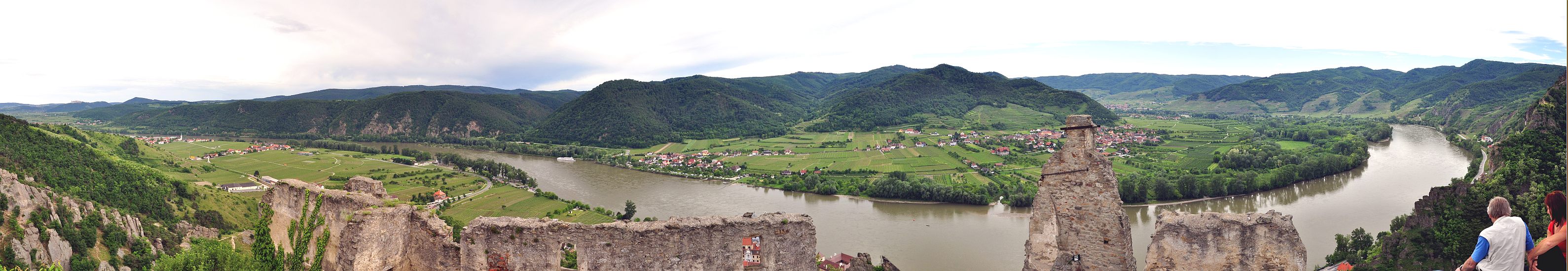 Panoramablick vom höchsten Punkt der Burgruine Dürnstein.