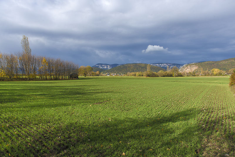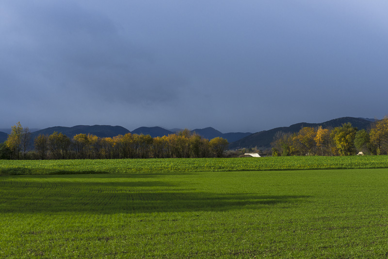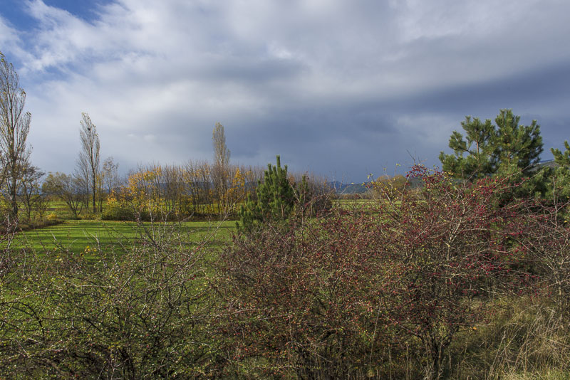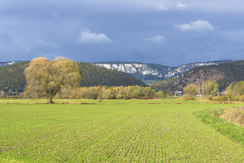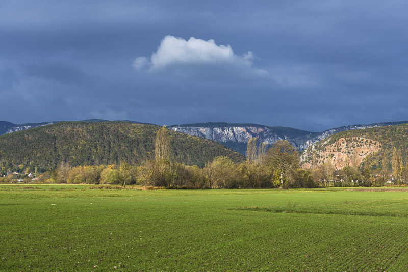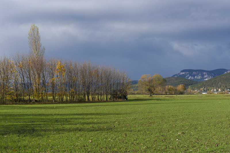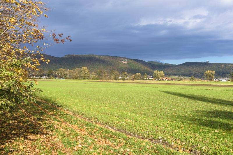 Eine Fönwetterlage: Während über den Bergen die Regenwolken hängen, reißen die Wolken über dem südlichen Wiener Becken ab. Die tiefe November - Vormittagssonne beleuchtet die Wolken. Ich muss in Weikersdorf zur Post und verbinde das gleich mit einem Spaziergang über die Felder Richtung Saubersdorf. Hier hat man die Regenwolken immer im Blick, und selber ist man weit genug entfernt, um (zumindest meistens) in der Sonne zu sein.