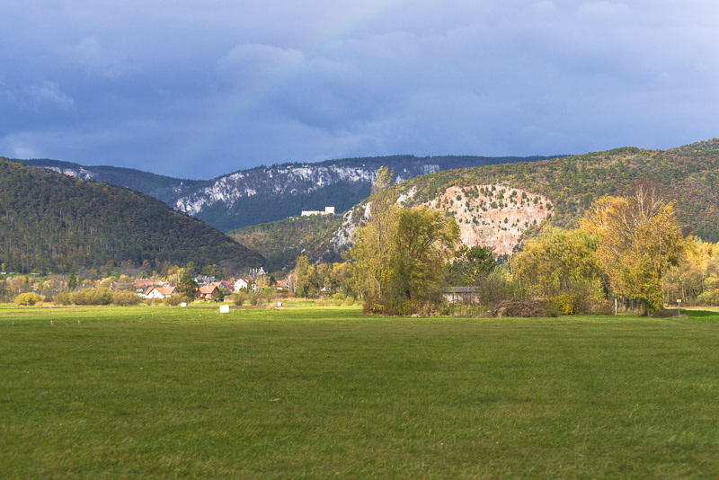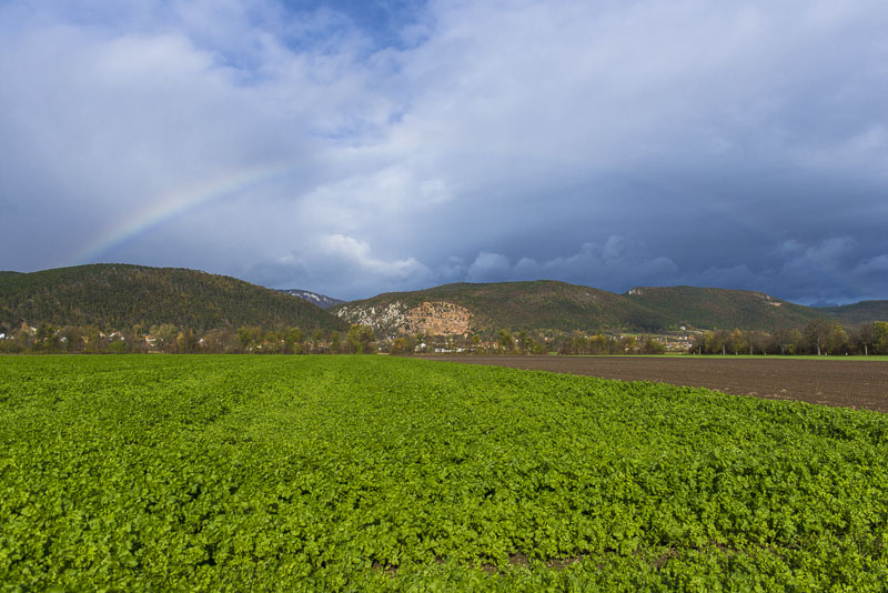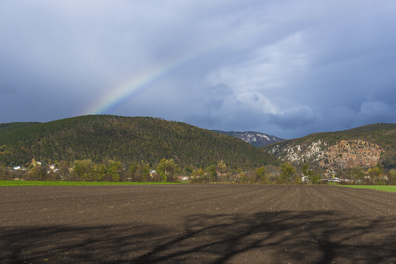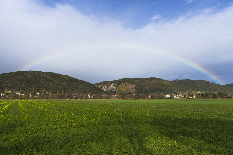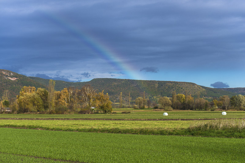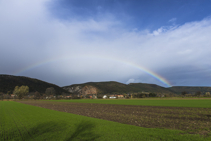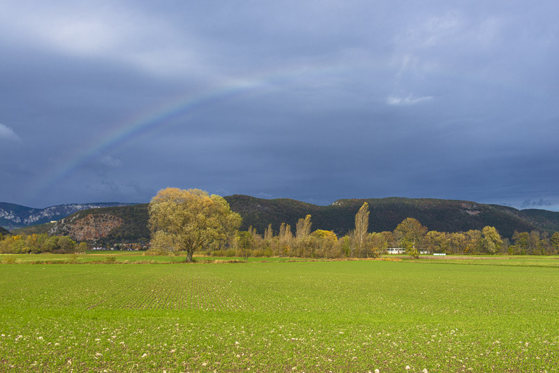 Eine Schauerwolke zieht vorüber und beschert mir den nächsten, allerdings schwachen Regenbogen.