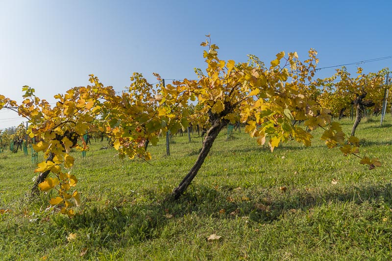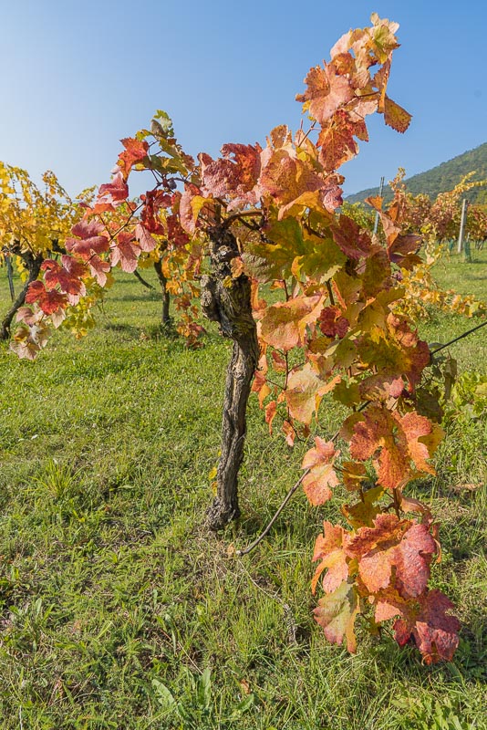 Einzelne Weinstöcke verfärben sich schön rot ...