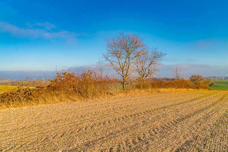 Ich gehe am Feldrand hinunter zum unteren Feldweg.