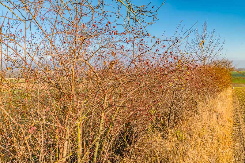 Die Hagebutten vertrocknen heuer bei dem wenigen Regen.