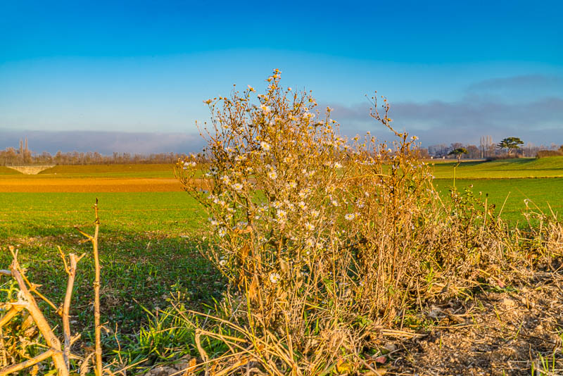 Sonnenfenster gibt´s auch schon Richtung Wiener Neustadt. Das Einjährige Berufkraut (Erigeron annuus) blüht noch immer.
