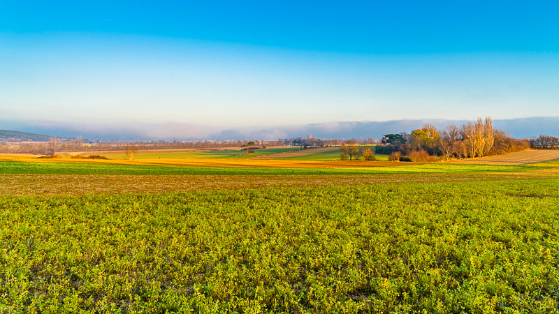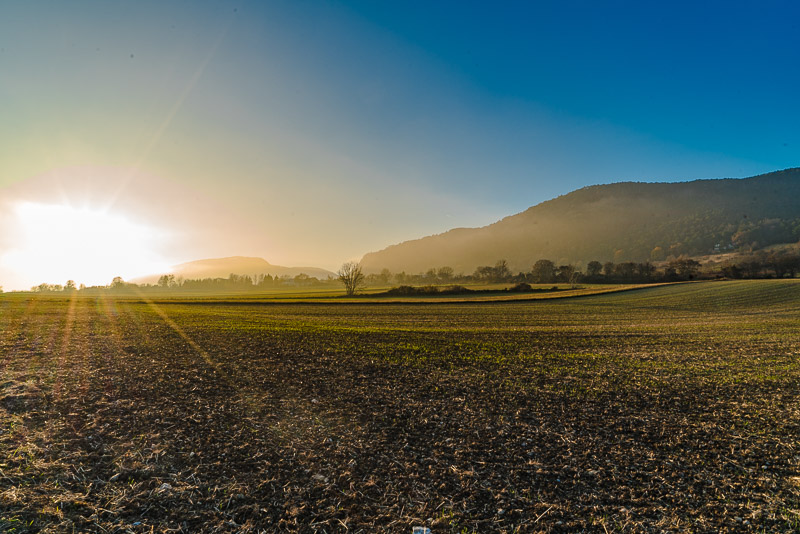 Winzendorf. Das Steinfeld (links) ist doch schon stellenweise nebelfrei.