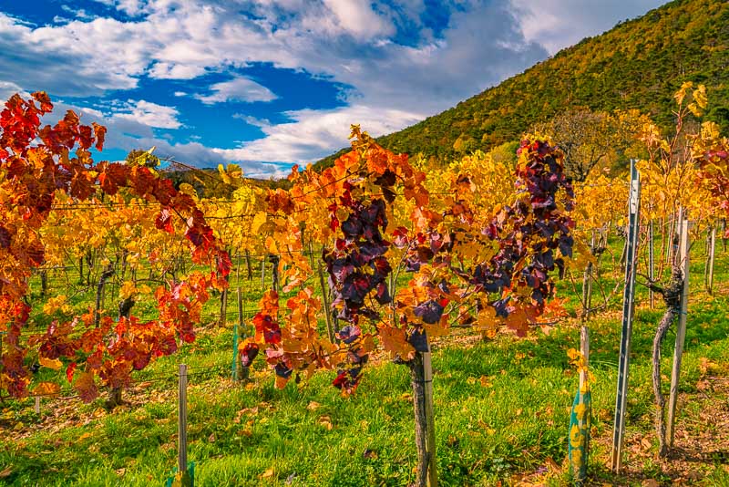 2.11.2020: After last night´s rain I have to venture out into the sun. It is still a bit cloudy, but I catch a sunny spell in the vineyards. Click here or into the picture for a larger display.